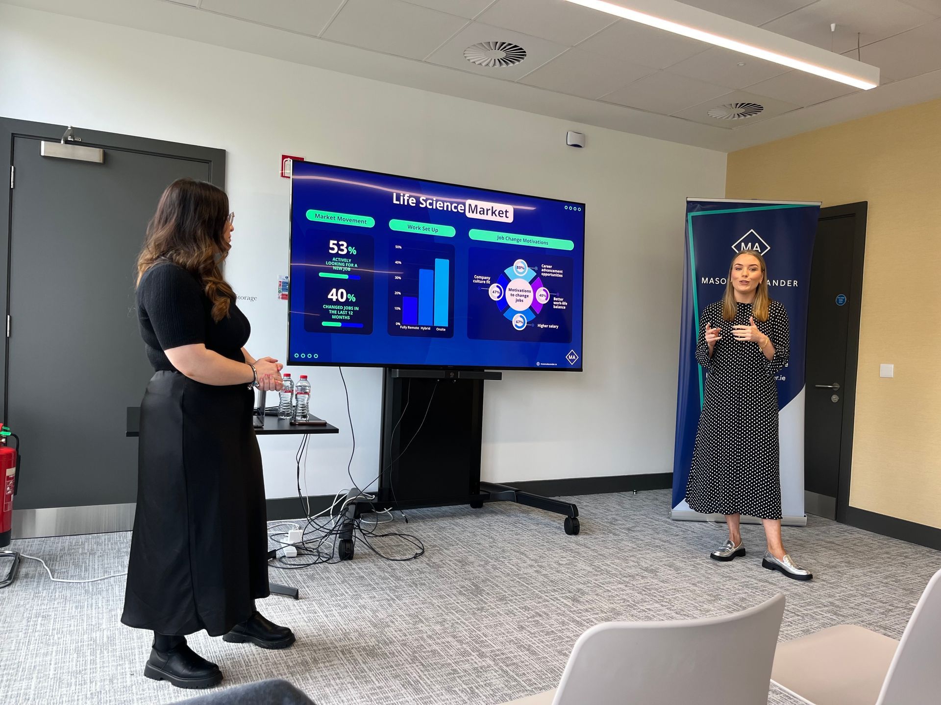 Mary and Ciana provided attendees with an overview of the current trends, challenges, and opportunities shaping the Life Science scene in Ireland. They provided data and statistics on Life Science candidate market movement, their typical work set up (hybrid, on-site, and remote work data), and job change motivations.
